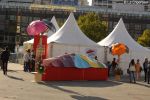 Il fut surtout question de beau temps Esplanade Charles de Gaulle à Rennes ce weekend ! Un soleil radieux est venu mettre en lumière les couleurs déposées par Caroline Depoil, petits ilôts bienfaiteurs permettant aux curieux et visiteurs de se repérer sur la planète « Climat » explorée en long et en large tout au long de ce temps fort. Concerts, activités pour petits et grands, conférences, un événement réussi porté par IVINE, la Fédération Ille et Vilaine Nature Environnement.