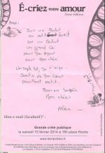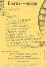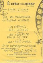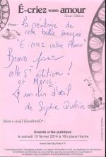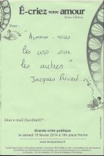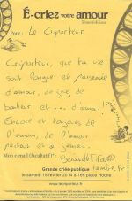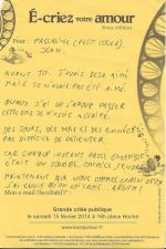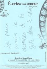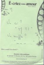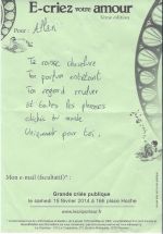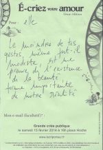 Ces déclarations, petites annonces, hommages, poèmes d’amour et calembours ont été déclamés par les crieurs du Criporteur dans les restaurants et les bars, sans oublier la Grande Criée publique du samedi 15 février, place Hoche. A la surprise générale, le soleil s’était invité sur la place pour l’occasion et a réchauffé les cœurs des spectateurs venus nombreux pour profiter de cette ambiance poétique, drôle et conviviale.