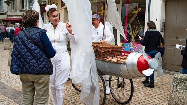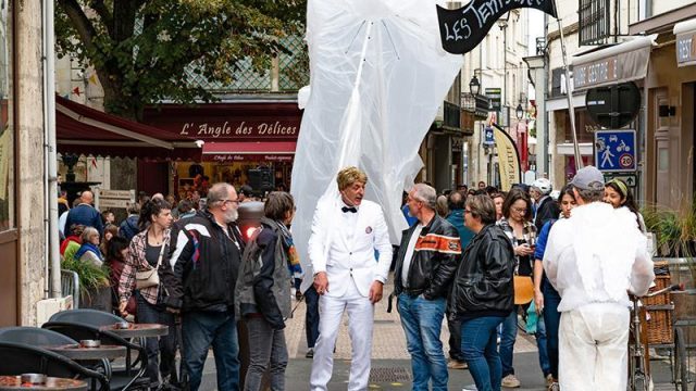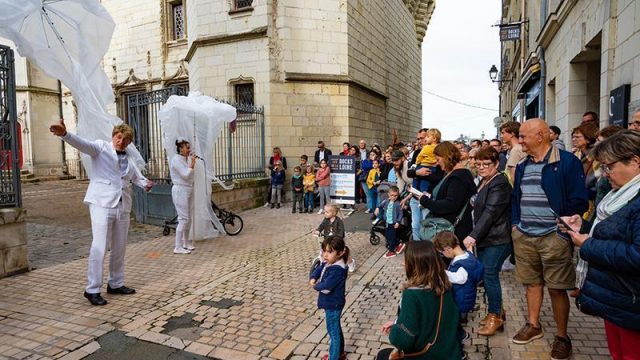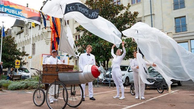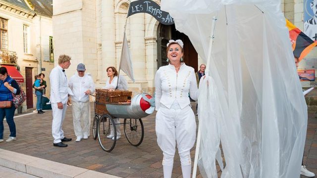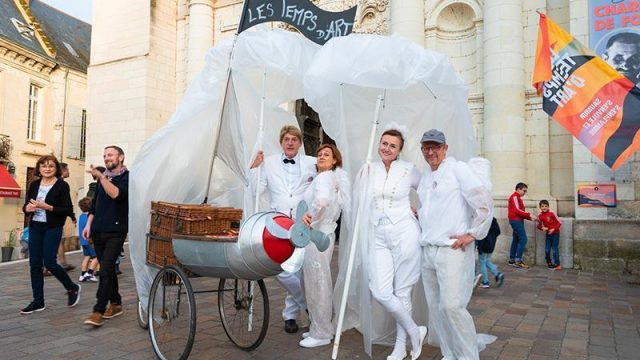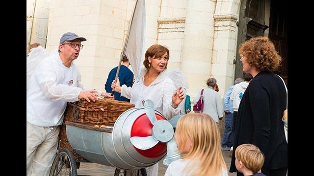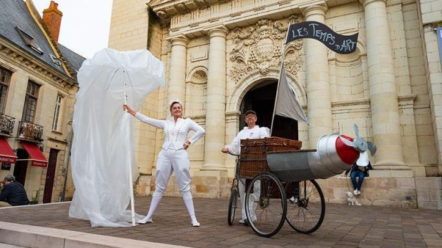 Pour le festival LES TEMPS D’ART à Saumur, le Criporteur a écrit la visite des lieux sur mesure, pour mettre en valeur l’univers médiéval de la ville et guider le public dans la rue. En déambulation dans les rues de Saumur, trois personnages hauts en couleur et le chauffeur du Tribordeur, guident et interpellent le public avec humour et fantaisie.