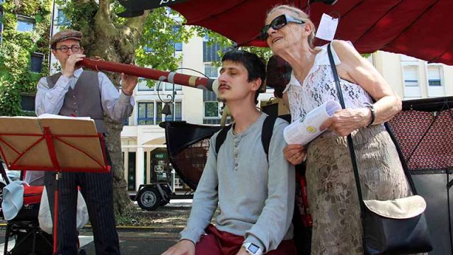 Soucieux de l’image et de l’imaginaire, nous choisissons ensemble parmi une sélection de costumes et accessoires de scène (vélobar, tribordeur, imaginarium) pour faire résonner les mots en harmonie visuelle !